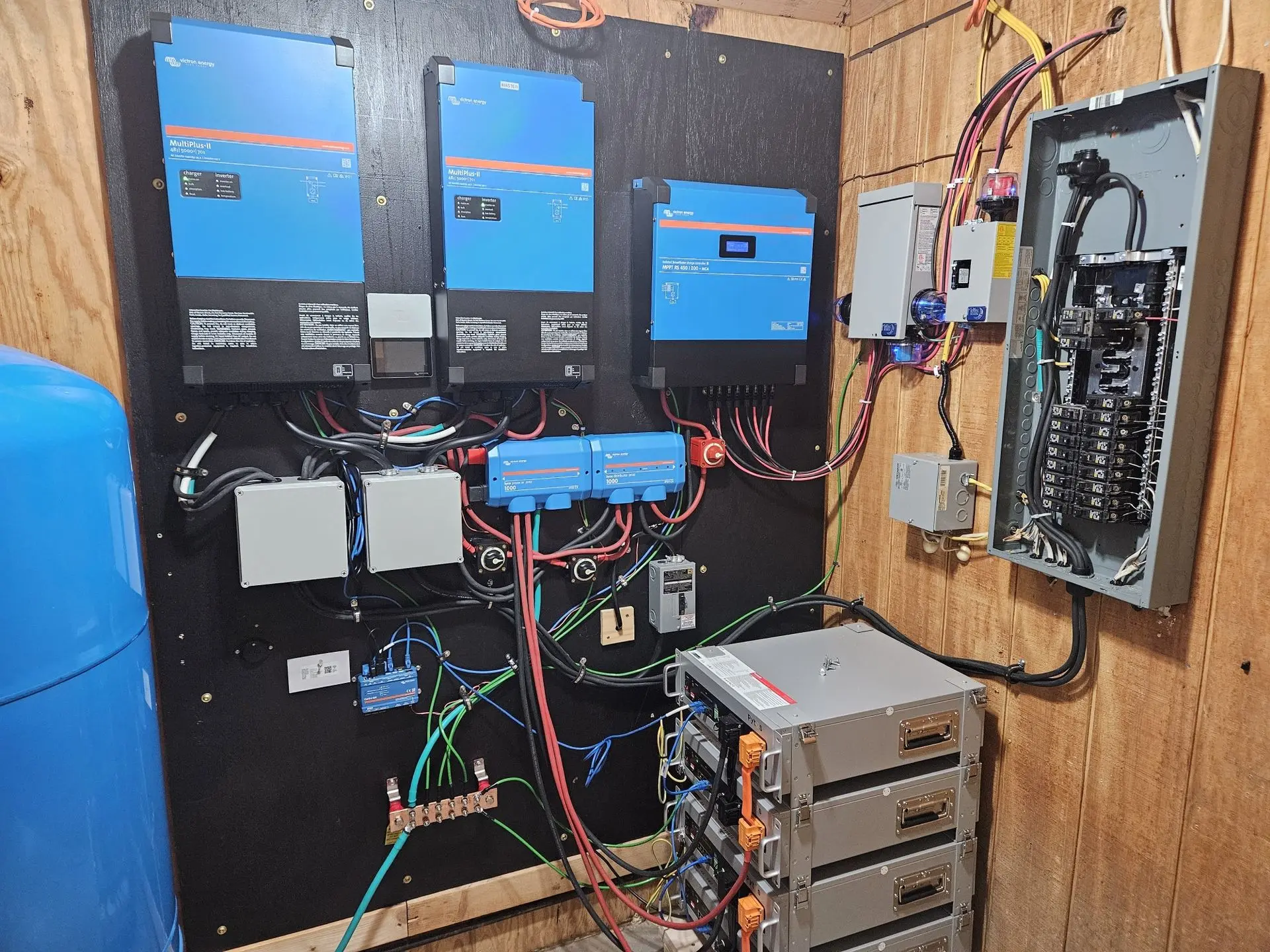 - Two Victron Energy MultiPlus-II 48/5000 inverters for 10kVA or 8kW of continuous 240V/120V power to have plenty of power for upgrades to the cabin
