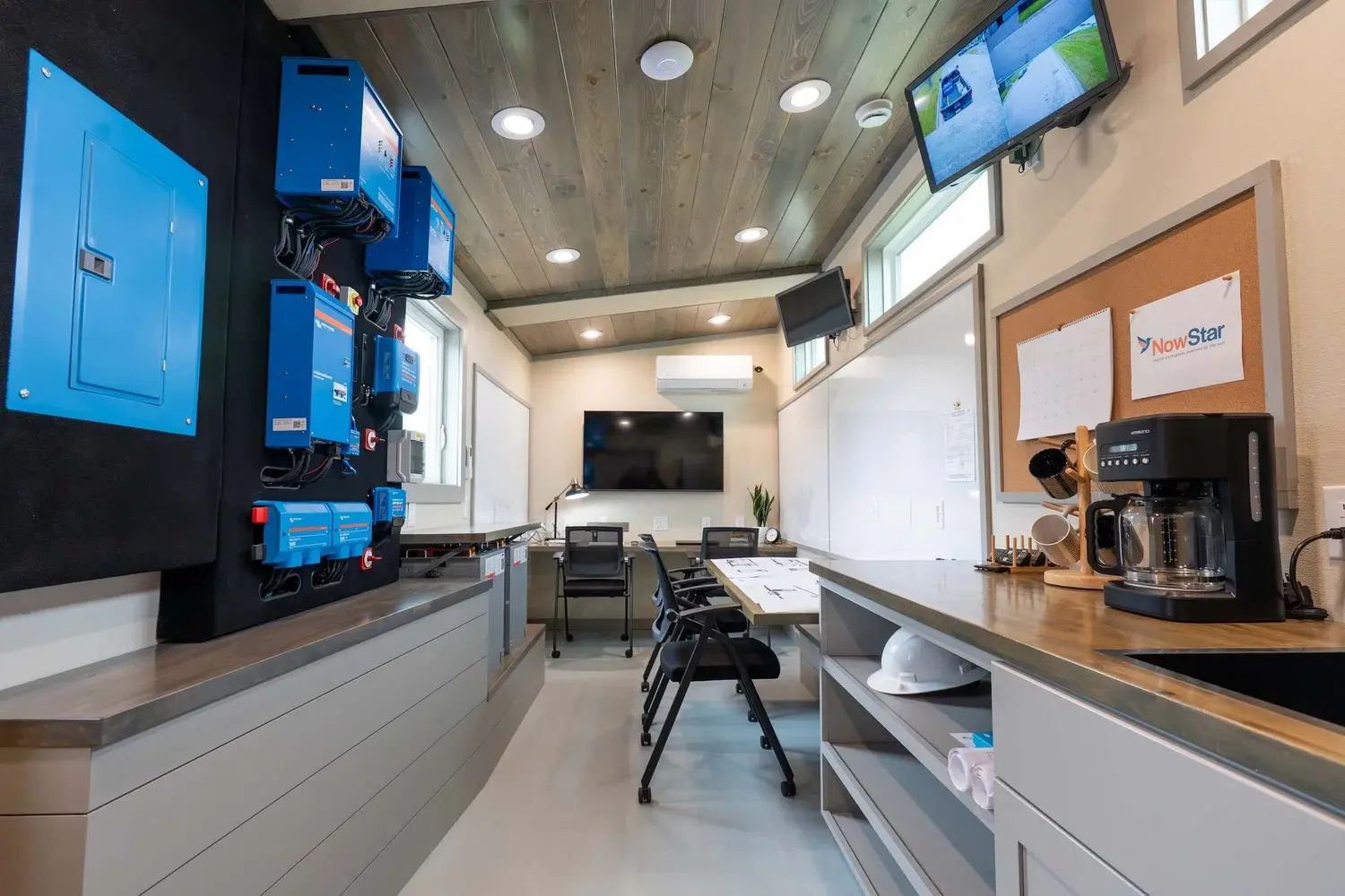 NowStar is a company led by engineers and craftsmen with years of designing and building innovative and beautiful structures. From their roots in high-end home remodeling, and then tiny home construction, and now solar-powered mobile workspaces, NowStar used that experience and delivered an amazing product that checked all of Caterpillar’s requirements with additional functional and aesthetic improvements. In the years to come, you will no doubt see a NowStar trailer at construction sites before you see the first bulldozers arrive. This trailer doesn't need utility power to provide a clean, comfortable, and modern office experience.