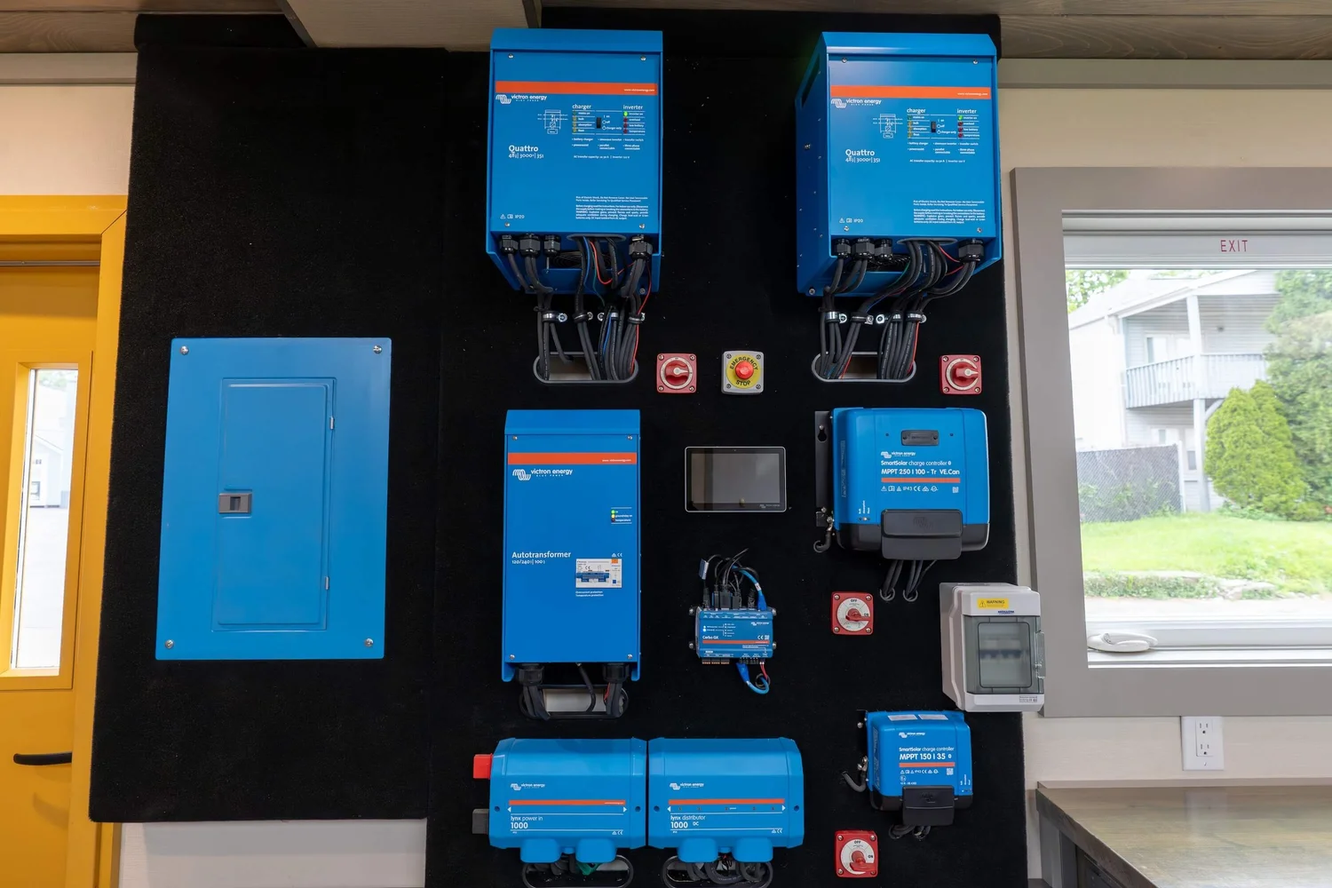 - A Victron Cerbo GX with Touch 70 screen to monitor and control the entire system